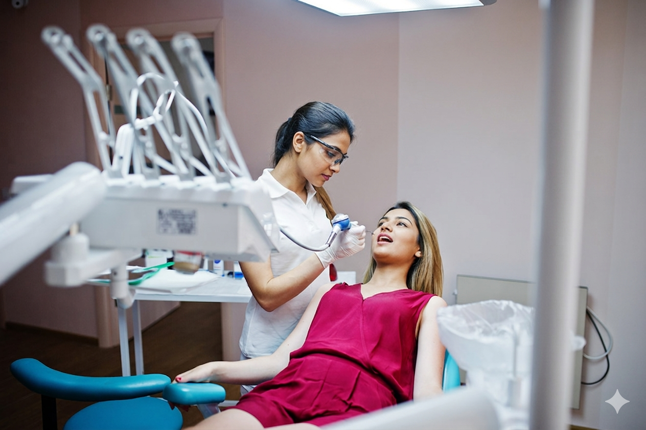 The dentist evaluates if laser treatment is suitable based on the patient’s condition.Preparation and Anesthesia (if necessary):